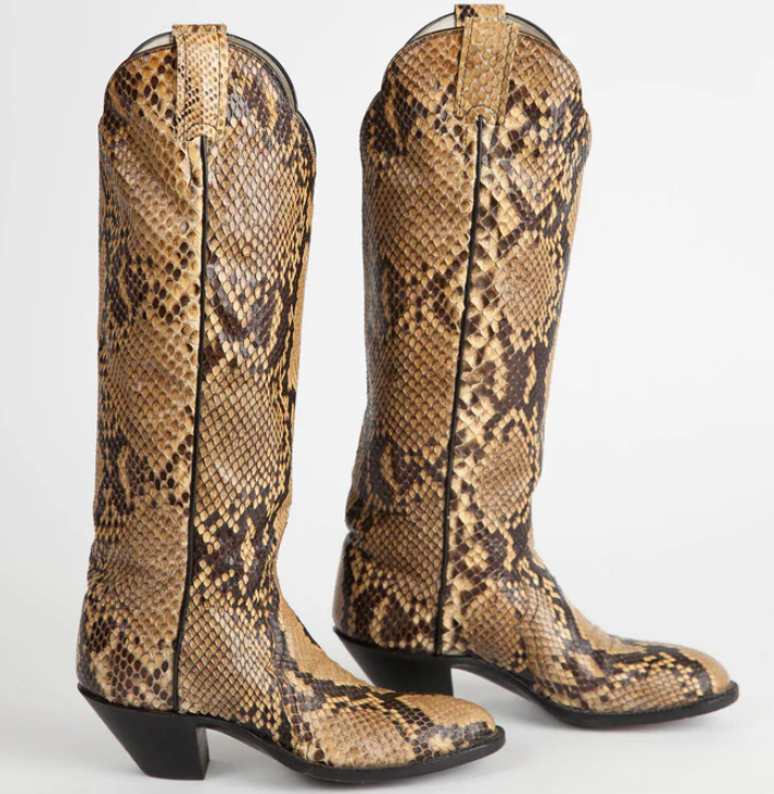VINTAGE LARRY MAHAN FULL PYTHON SNAKESKIN COWBOY BOOTS